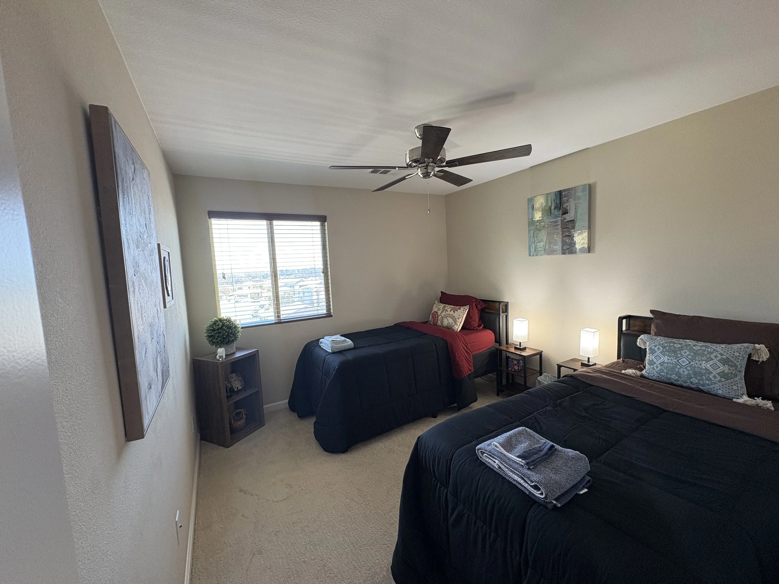 Tucked just off the main hallway, these two upstairs bedrooms are bright, restful, and intentionally designed for comfort. Each room sleeps two and offers a quiet escape—whether you're curling up with a book, catching up on sleep, or simply enjoying the stillness that surrounds you. Designed with simplicity and warmth, they’re perfect for anyone seeking a peaceful place to land after a day of creativity and connection.